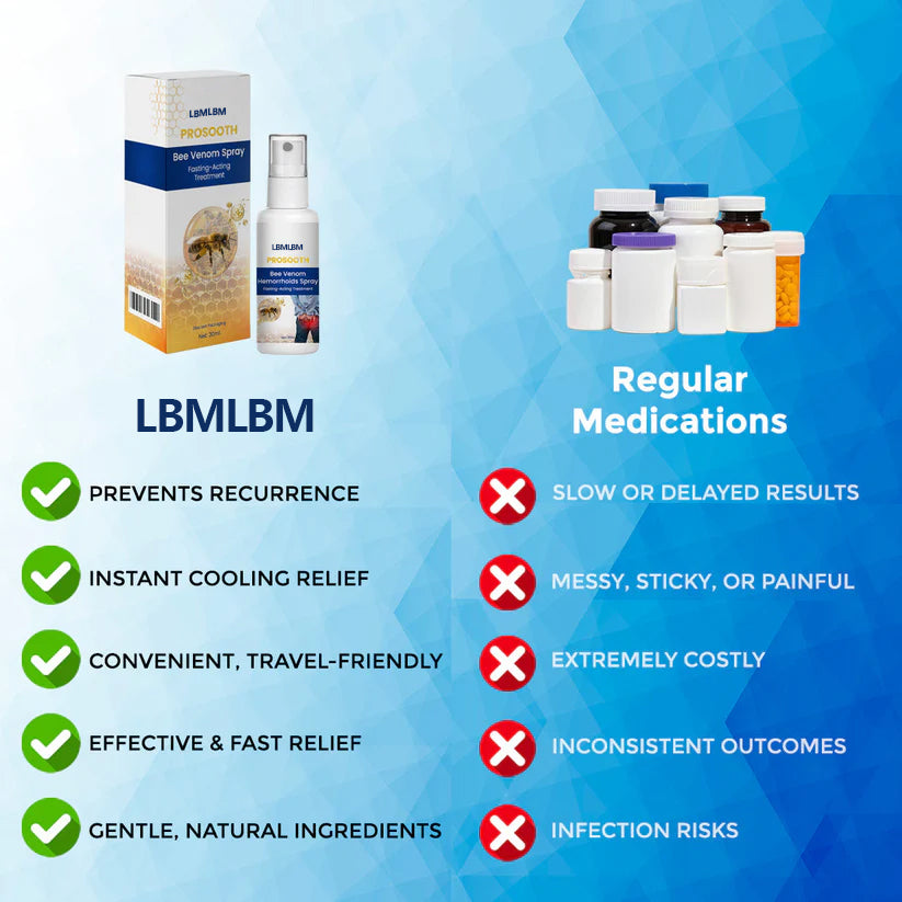 LBMLBM® ProSooth Bee Venom Hemorrhoids Spray delivers fast, medical-grade relief in a gentle, discreet mist. Formulated to ease irritation, reduce swelling, and promote lasting recovery, its easy-to-apply 360° design lets you treat flare-ups anytime, anywhere—so you can sit, move, and live comfortably and confidently again.